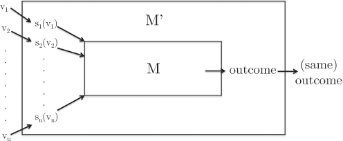 构造如下的机制,其中参与者代理了遵循合适的占优策略的责任。准确的说,(直接显示)机制从局中人那里接受密封的报价。它提交报价给机制,并选择和相同的结果(例如拍卖的获胜者和出售价格)。